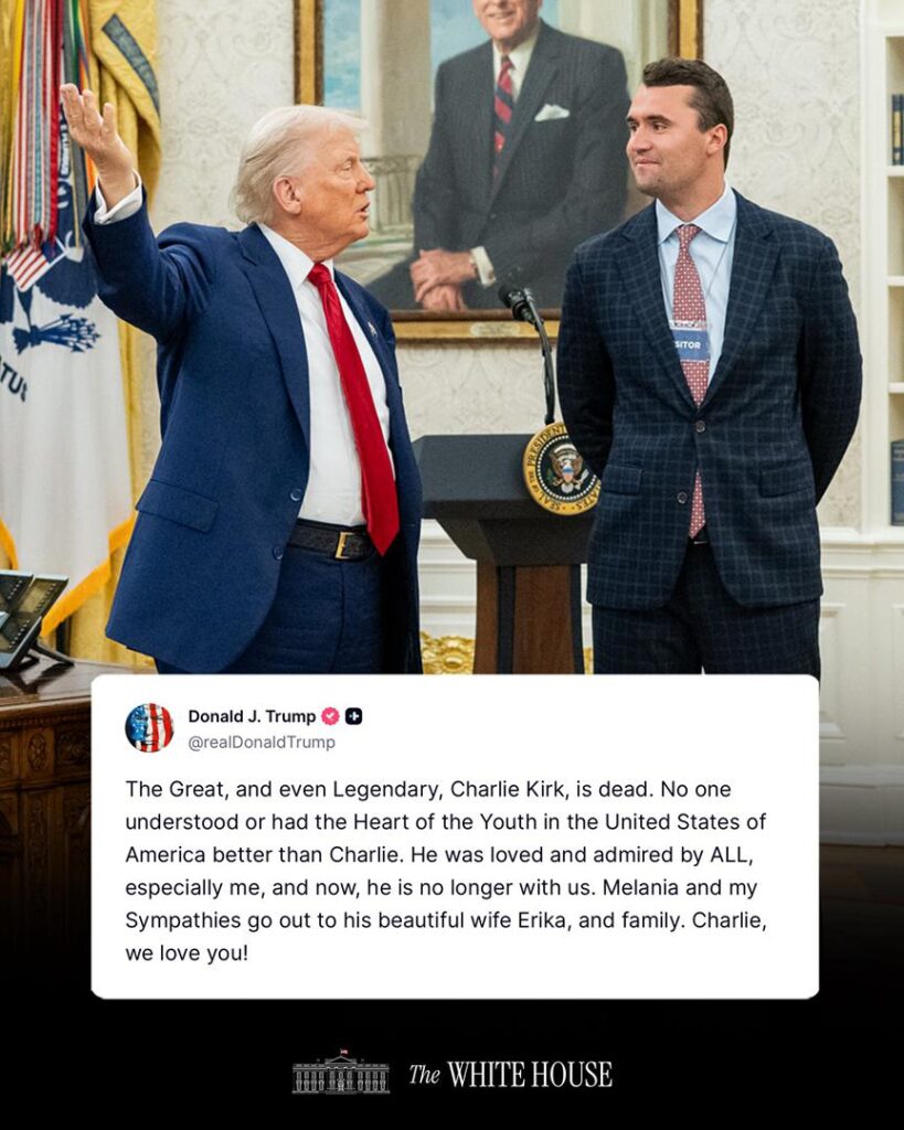 In a post on X, American president, Donald Trump mourned his longtime ally: “The Great, and even Legendary, Charlie Kirk, is dead. No one understood or had the Heart of the Youth in the United States of America better than Charlie. He was loved and admired by ALL, especially me, and now, he is no longer with us.”