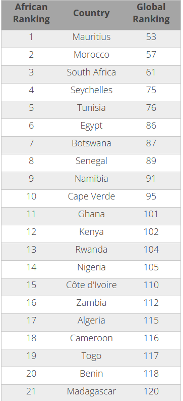 South Africa ranked third on the continent and 61st globally, followed by the Seychelles (75th), Tunisia (76th), Egypt (86th), Botswana (87th), Senegal (89th), and Namibia (91st). Cape Verde rounded out Africa’s top 10 with a global rank of 95.
