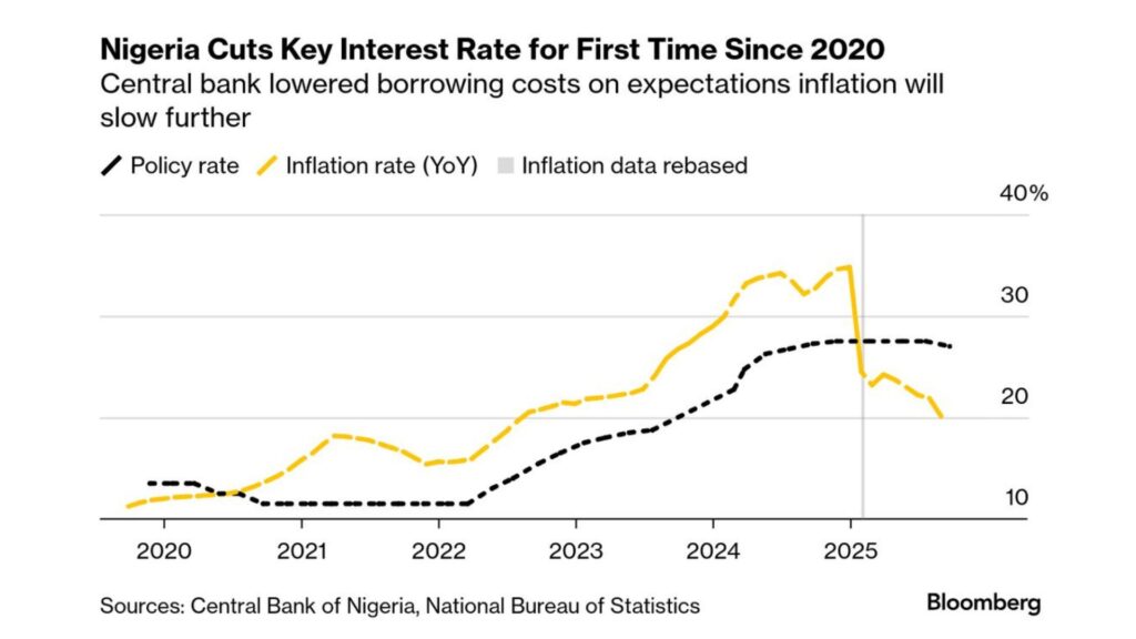 The Central Bank of Nigeria (CBN) cut its benchmark interest rate by 50 basis points to 27% on September 23, marking its first rate cut in five years. The move comes after a long tightening cycle aimed at curbing runaway inflation.